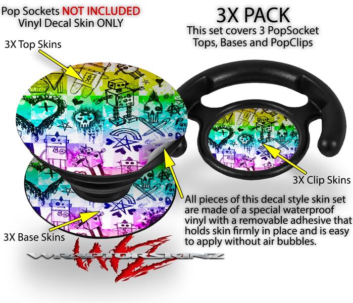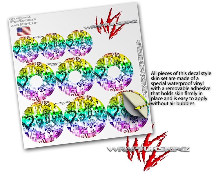 Decal Style Vinyl Skin Wrap 3 Pack for PopSockets Scene Kid Sketches Rainbow (POPSOCKET NOT INCLUDED)
