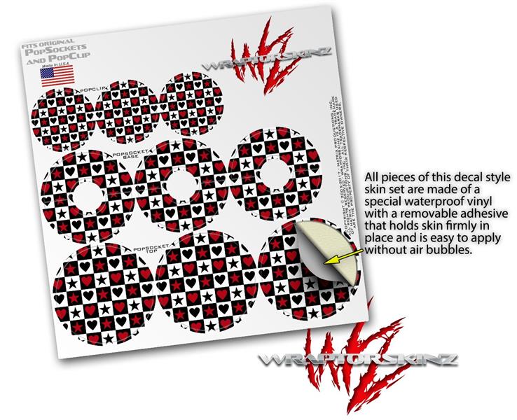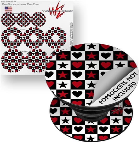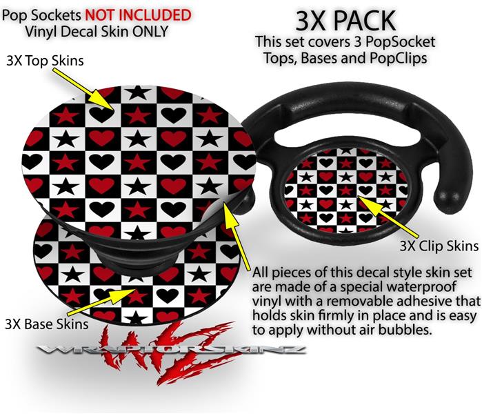 Decal Style Vinyl Skin Wrap 3 Pack for PopSockets Hearts and Stars Red (POPSOCKET NOT INCLUDED)