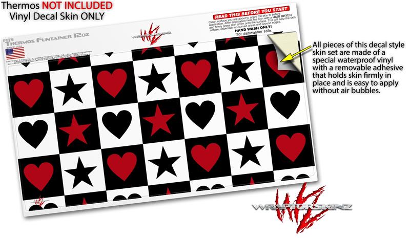 Skin Decal Wrap for Thermos Funtainer 12oz Bottle Hearts and Stars Red (BOTTLE NOT INCLUDED) by WraptorSkinz