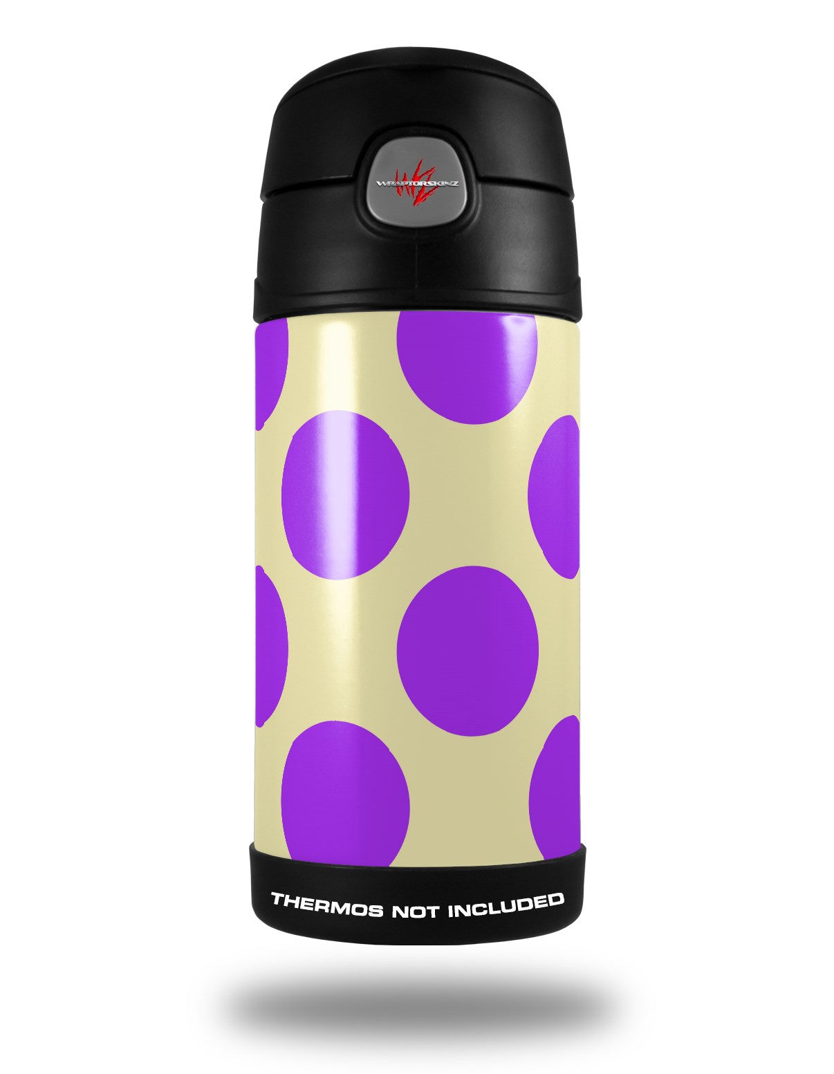 Skin Decal Wrap for Thermos Funtainer 12oz Bottle Kearas Polka Dots Purple On Cream (BOTTLE NOT INCLUDED) by WraptorSkinz