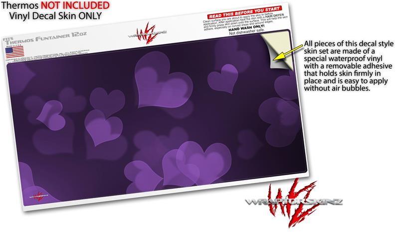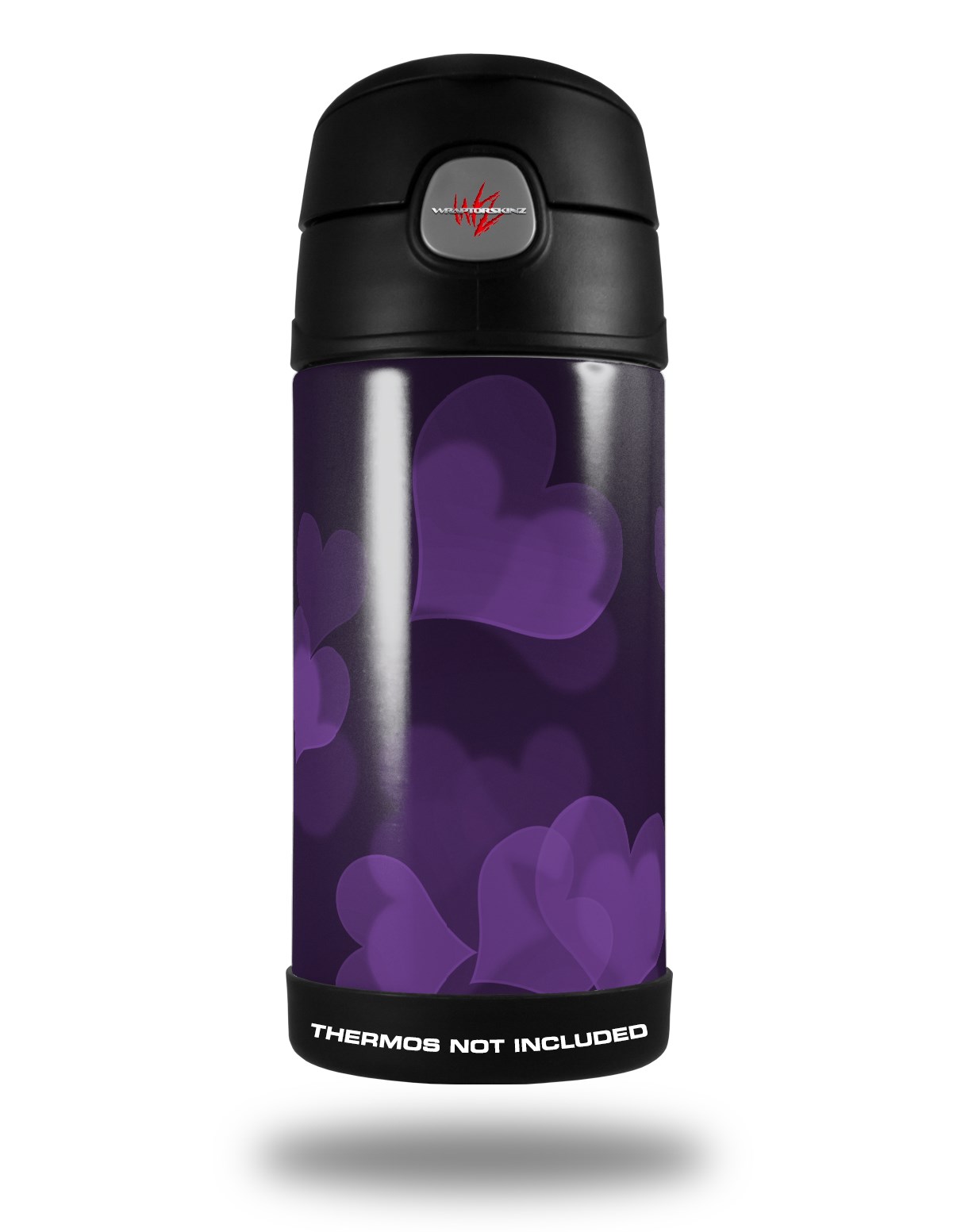 Skin Decal Wrap for Thermos Funtainer 12oz Bottle Bokeh Hearts Purple (BOTTLE NOT INCLUDED) by WraptorSkinz