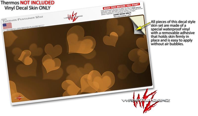 Skin Decal Wrap for Thermos Funtainer 12oz Bottle Bokeh Hearts Orange (BOTTLE NOT INCLUDED) by WraptorSkinz