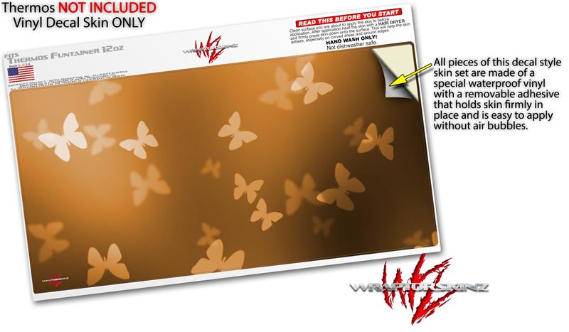 Skin Decal Wrap for Thermos Funtainer 12oz Bottle Bokeh Butterflies Orange (BOTTLE NOT INCLUDED) by WraptorSkinz