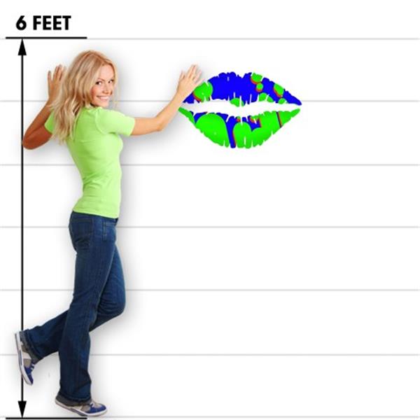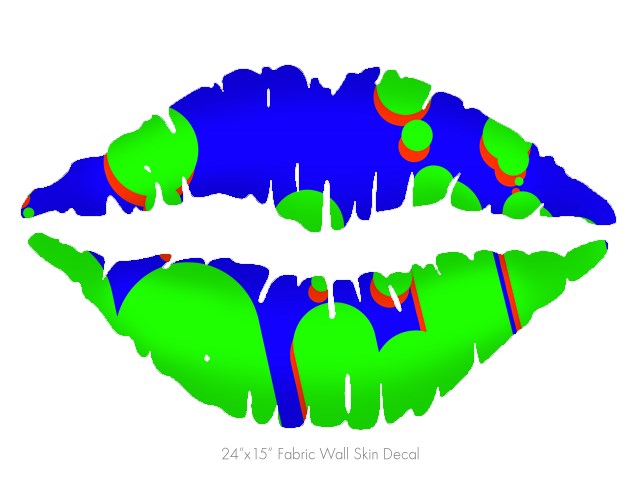 Drip Blue Green Red - Kissing Lips Fabric Wall Skin Decal measures 24x15 inches