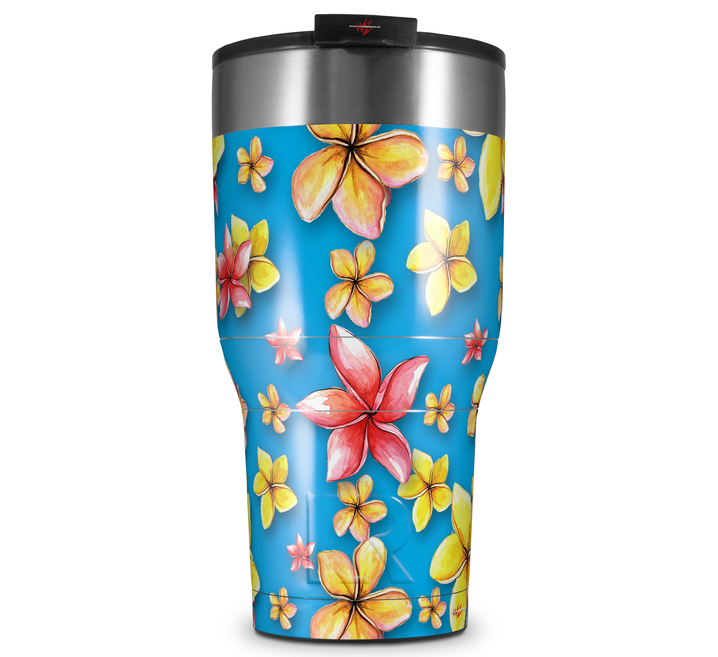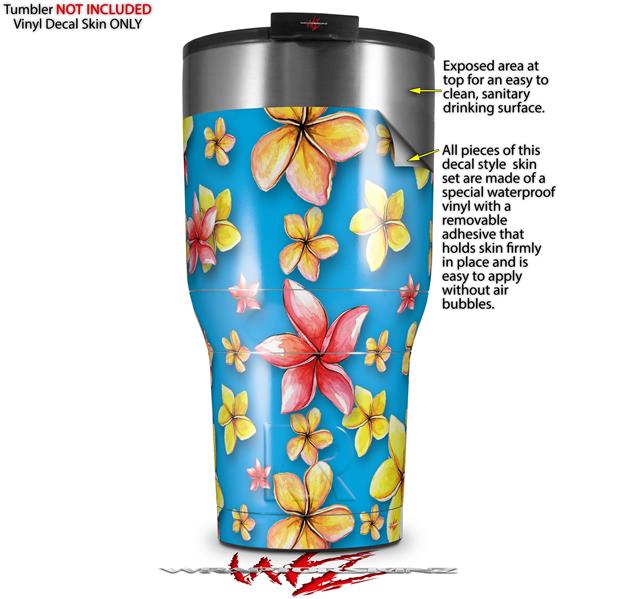 WraptorSkinz Skin Wrap compatible with 2017 and newer RTIC Tumblers 30oz Beach Flowers Blue Medium (TUMBLER NOT INCLUDED)