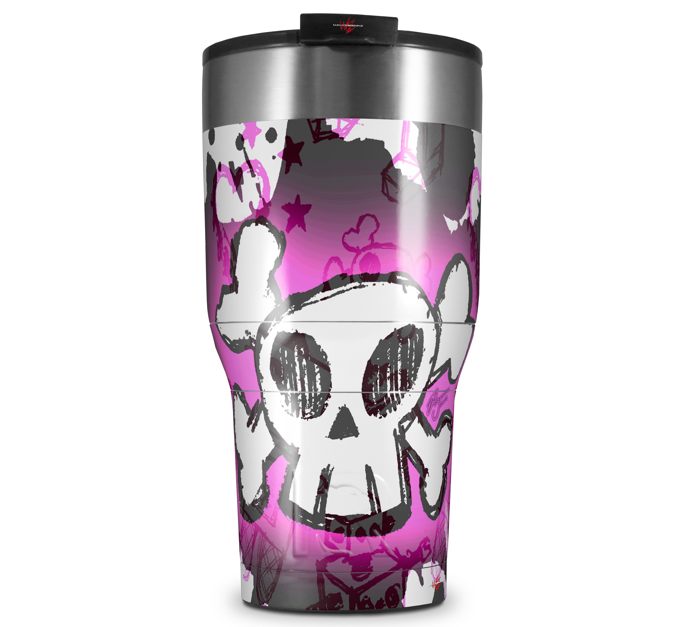 WraptorSkinz Skin Wrap compatible with 2017 and newer RTIC Tumblers 30oz Cartoon Skull Pink (TUMBLER NOT INCLUDED)