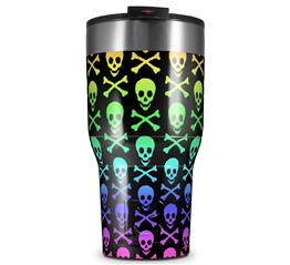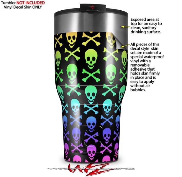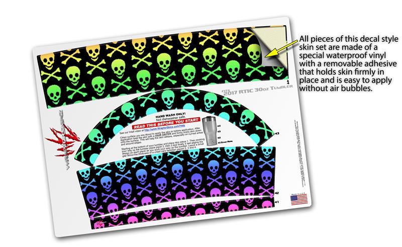 WraptorSkinz Skin Wrap compatible with 2017 and newer RTIC Tumblers 30oz Skull and Crossbones Rainbow (TUMBLER NOT INCLUDED)