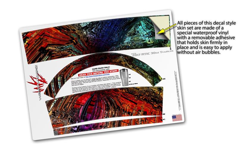 WraptorSkinz® skin wraps for 2017 RTIC Tumblers are printed using superb photo quality designs and vibrant colors printed with special fade resistant inks that last even in direct sun for years. WraptorSkinz® are a composite of two layers of commercial grade materials. The bottom layer is a soft, flexible vinyl with a special removable adhesive that is easily positioned, applied without air bubbles. Next we print the bottom layer with UV protected, fade resistant inks that deliver superb photo quality designs in vibrant colors. Finally we bond a professional grade laminate over the entire skin adding a glossy protective finish.