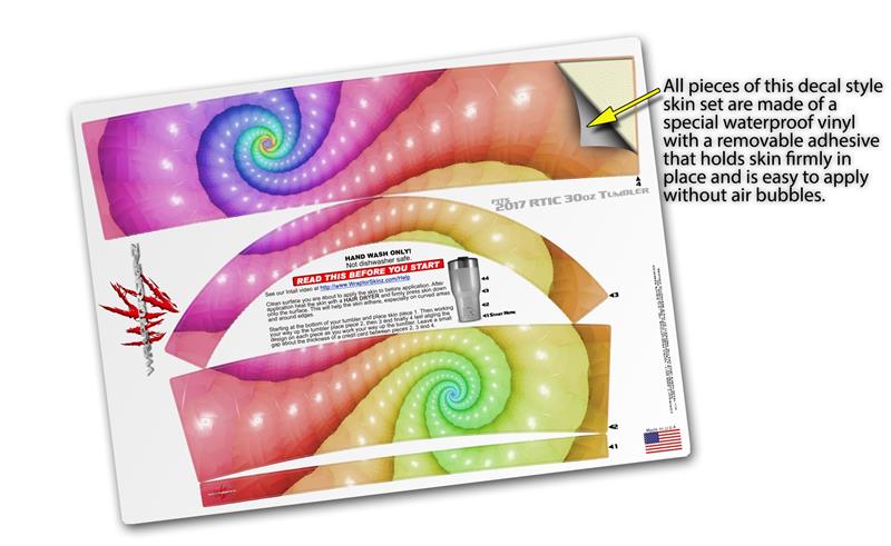 WraptorSkinz® skin wraps for 2017 RTIC Tumblers are printed using superb photo quality designs and vibrant colors printed with special fade resistant inks that last even in direct sun for years. WraptorSkinz® are a composite of two layers of commercial grade materials. The bottom layer is a soft, flexible vinyl with a special removable adhesive that is easily positioned, applied without air bubbles. Next we print the bottom layer with UV protected, fade resistant inks that deliver superb photo quality designs in vibrant colors. Finally we bond a professional grade laminate over the entire skin adding a glossy protective finish.