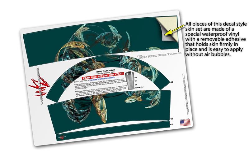 WraptorSkinz® skin wraps for 2017 RTIC Tumblers are printed using superb photo quality designs and vibrant colors printed with special fade resistant inks that last even in direct sun for years. WraptorSkinz® are a composite of two layers of commercial grade materials. The bottom layer is a soft, flexible vinyl with a special removable adhesive that is easily positioned, applied without air bubbles. Next we print the bottom layer with UV protected, fade resistant inks that deliver superb photo quality designs in vibrant colors. Finally we bond a professional grade laminate over the entire skin adding a glossy protective finish.