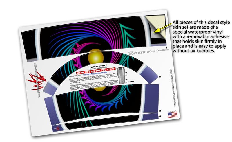 WraptorSkinz® skin wraps for 2017 RTIC Tumblers are printed using superb photo quality designs and vibrant colors printed with special fade resistant inks that last even in direct sun for years. WraptorSkinz® are a composite of two layers of commercial grade materials. The bottom layer is a soft, flexible vinyl with a special removable adhesive that is easily positioned, applied without air bubbles. Next we print the bottom layer with UV protected, fade resistant inks that deliver superb photo quality designs in vibrant colors. Finally we bond a professional grade laminate over the entire skin adding a glossy protective finish.