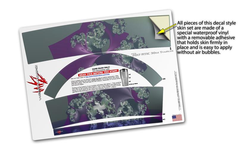 WraptorSkinz® skin wraps for 2017 RTIC Tumblers are printed using superb photo quality designs and vibrant colors printed with special fade resistant inks that last even in direct sun for years. WraptorSkinz® are a composite of two layers of commercial grade materials. The bottom layer is a soft, flexible vinyl with a special removable adhesive that is easily positioned, applied without air bubbles. Next we print the bottom layer with UV protected, fade resistant inks that deliver superb photo quality designs in vibrant colors. Finally we bond a professional grade laminate over the entire skin adding a glossy protective finish.