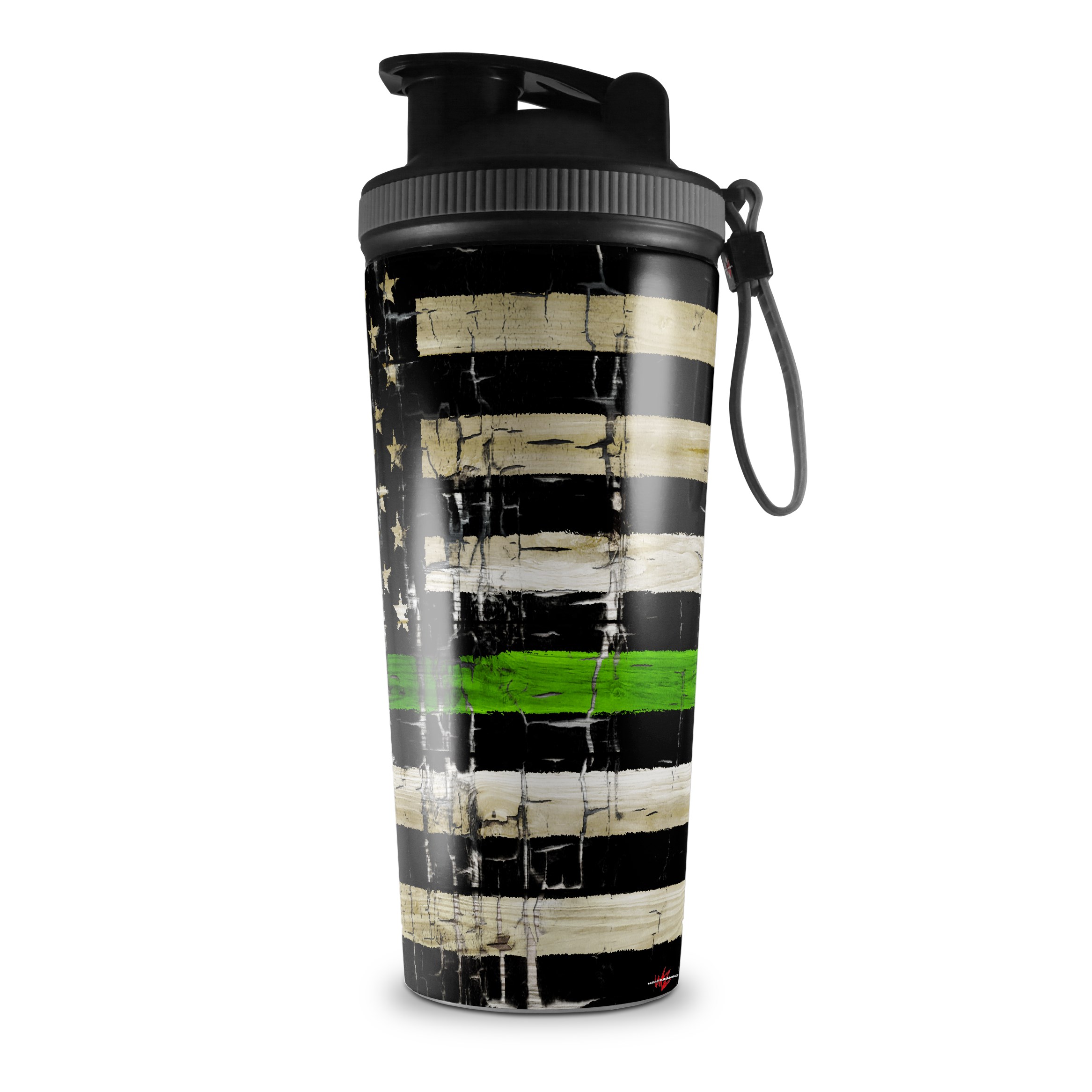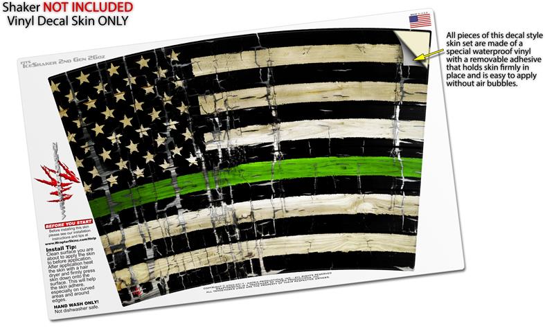 Skin Wrap Decal for IceShaker 2nd Gen 26oz Painted Faded and Cracked Green Line USA American Flag (SHAKER NOT INCLUDED)