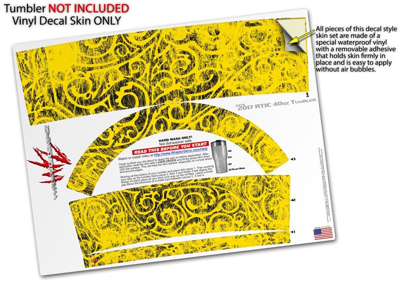 Skin Wrap Decal for 2017 RTIC Tumblers 40oz Folder Doodles Yellow (TUMBLER NOT INCLUDED)