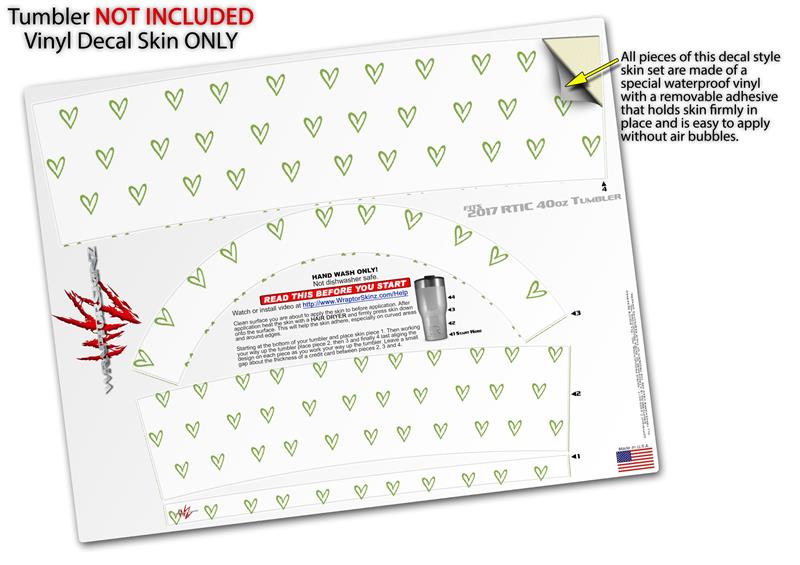 Skin Wrap Decal for 2017 RTIC Tumblers 40oz Hearts Green (TUMBLER NOT INCLUDED)
