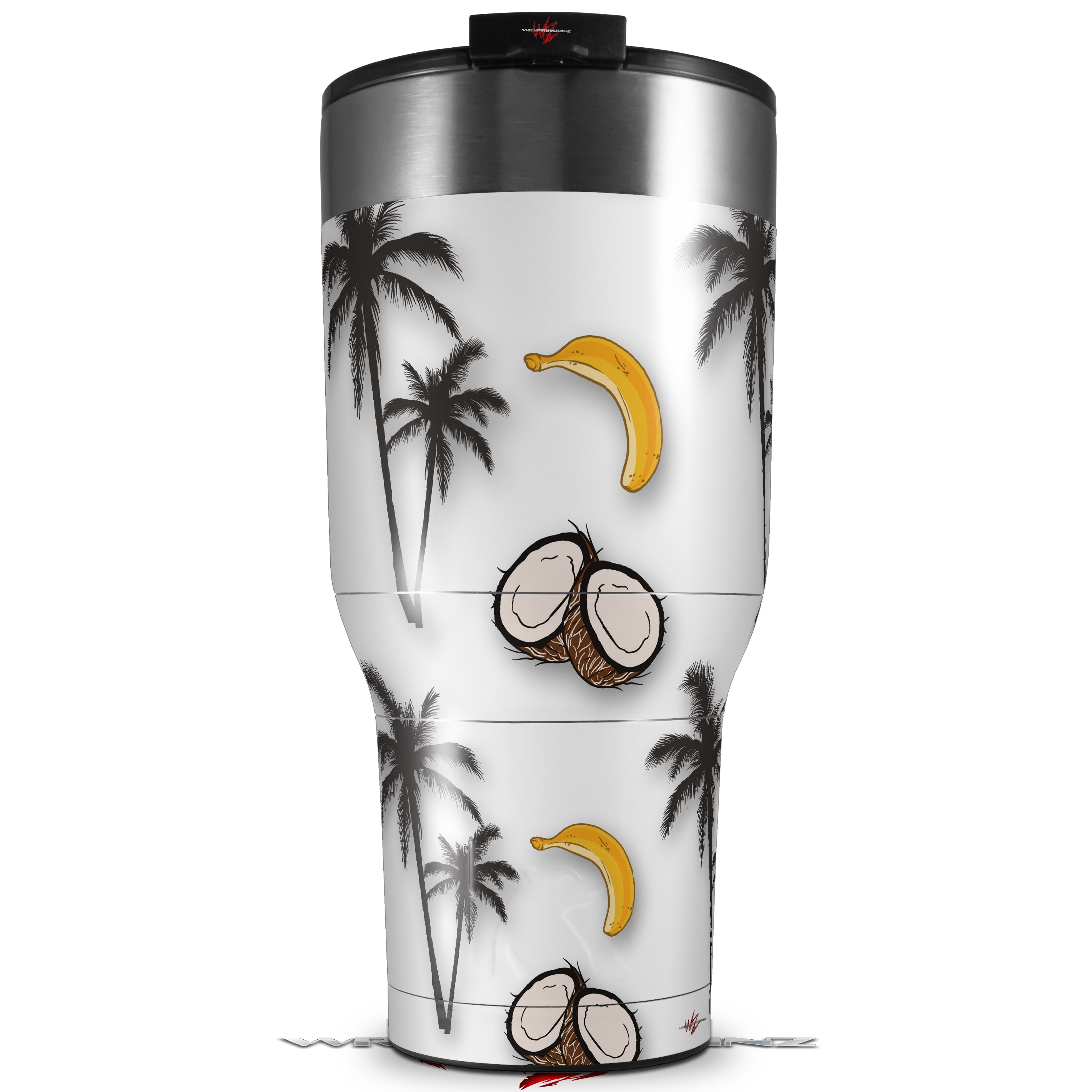 Skin Wrap Decal for 2017 RTIC Tumblers 40oz Coconuts Palm Trees and Bananas White (TUMBLER NOT INCLUDED)