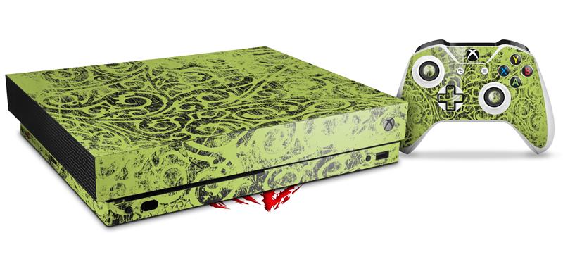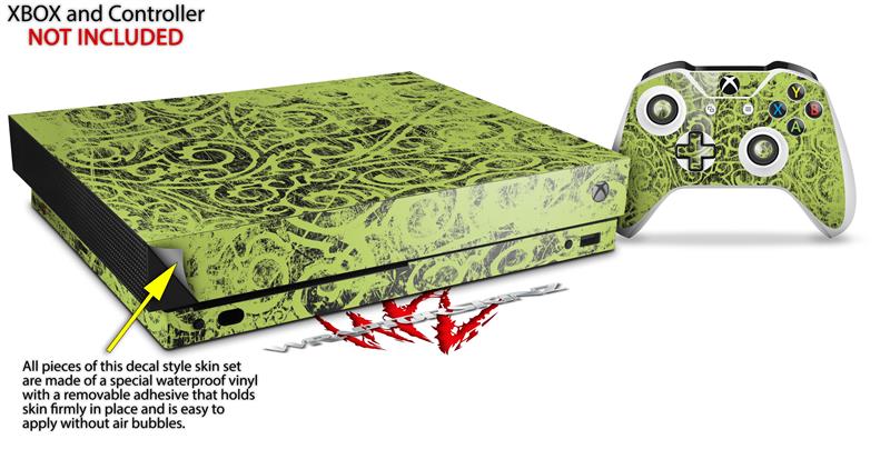 Skin Wrap for XBOX One X Console and Controller Folder Doodles Sage Green