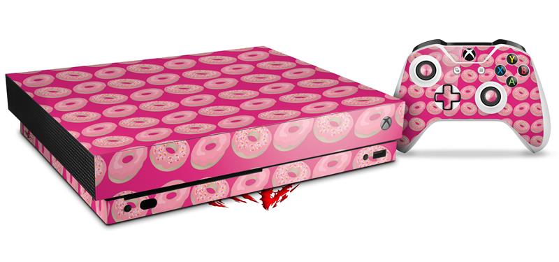 Skin Wrap for XBOX One X Console and Controller Donuts Hot Pink Fuchsia