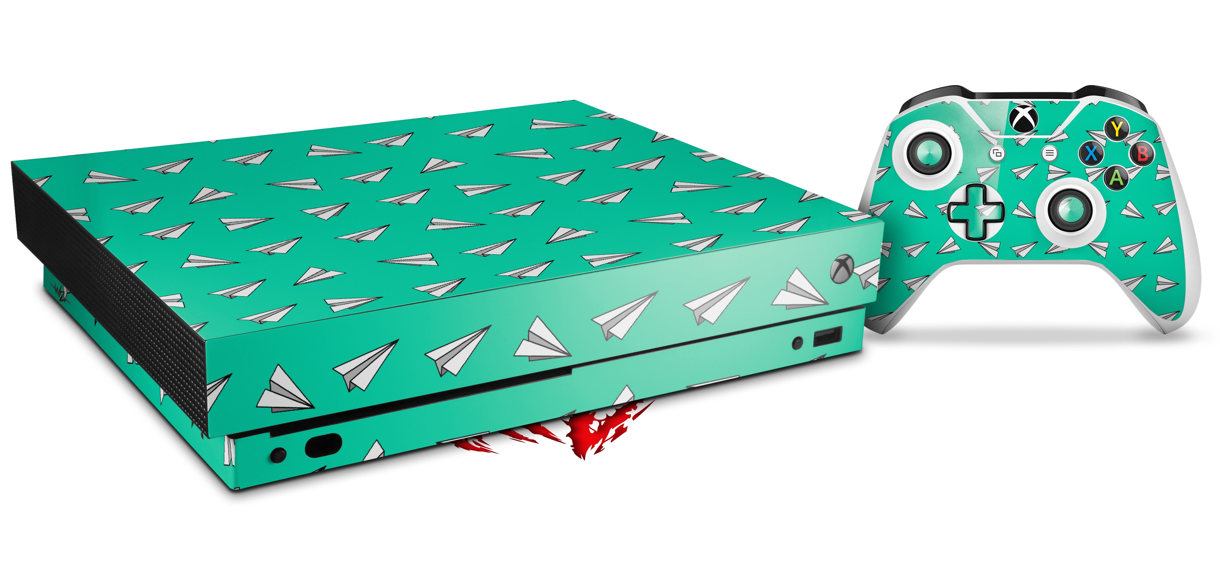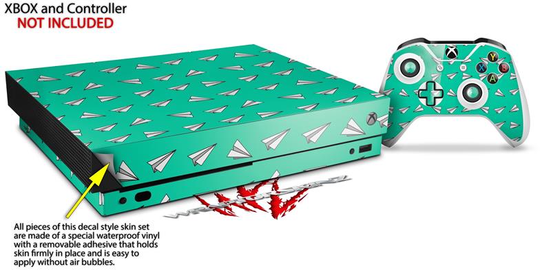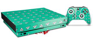 Skin Wrap for XBOX One X Console and Controller Paper Planes Turquoise