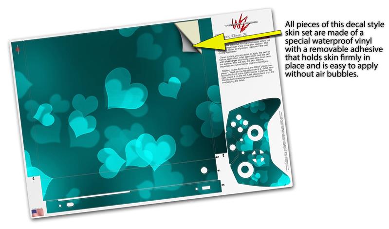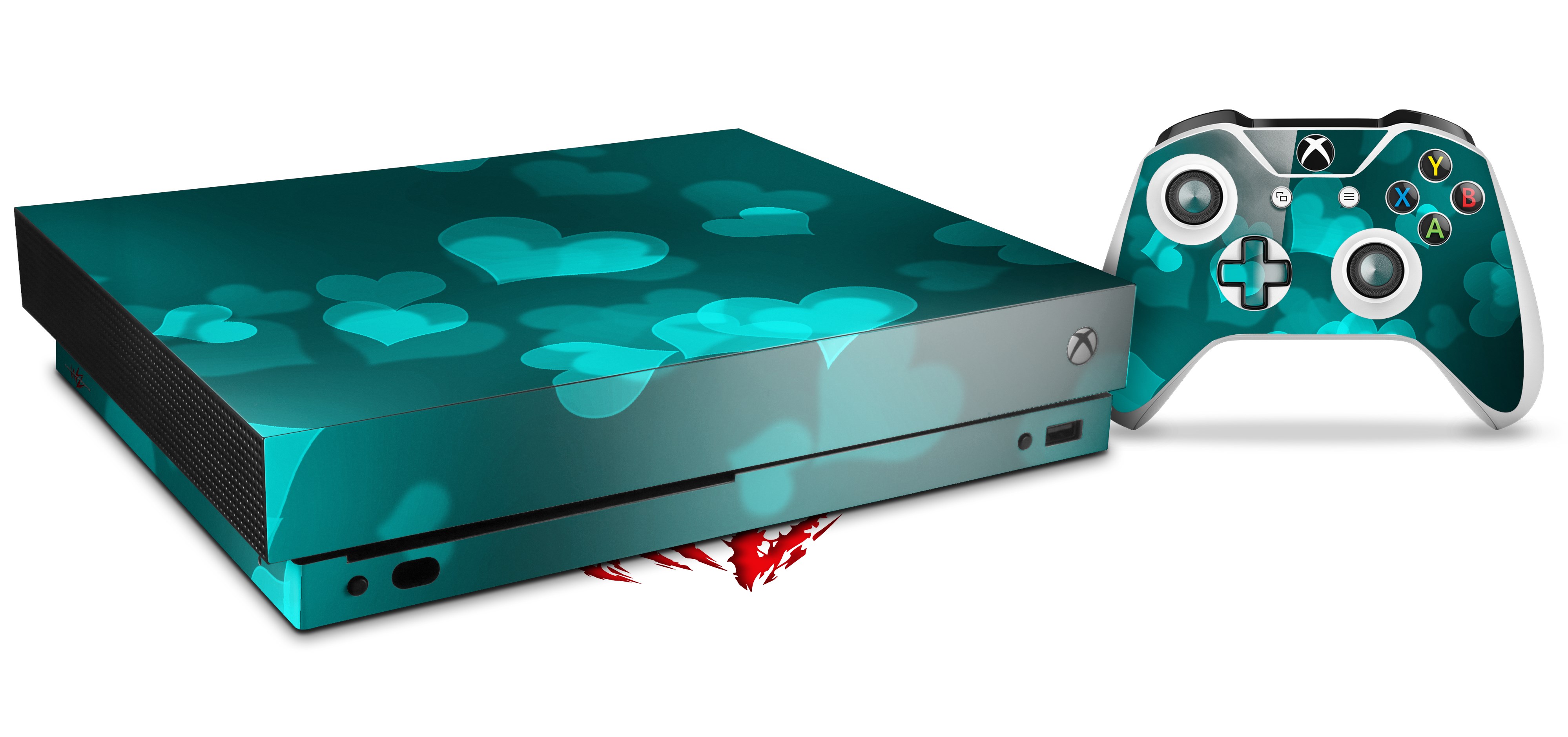 Skin Wrap for XBOX One X Console and Controller Bokeh Hearts Neon Teal