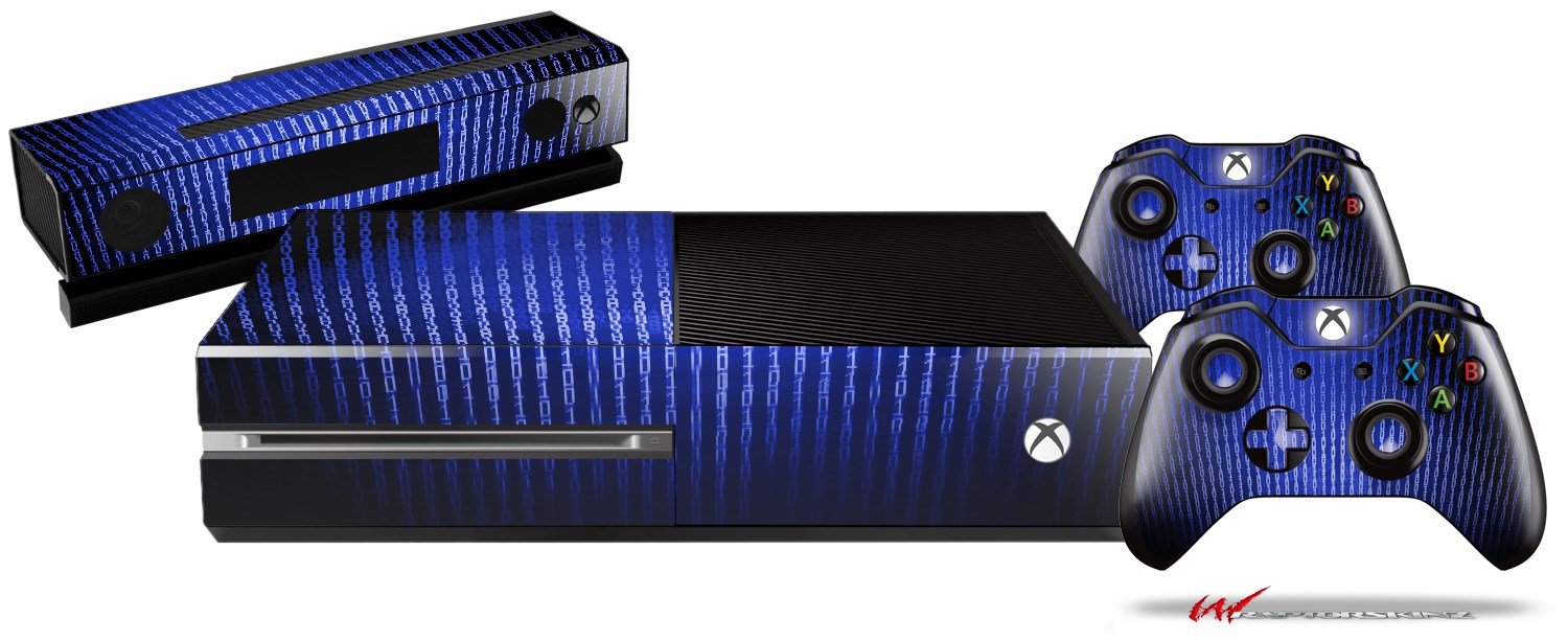 Binary Rain Blue - Holiday Bundle Decal Style Skin fits XBOX One Console Original, Kinect and 2 Controllers (XBOX SYSTEM NOT INCLUDED)
