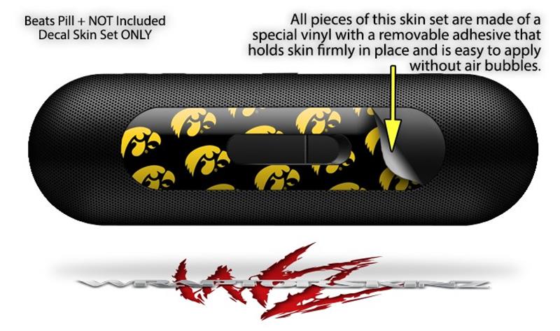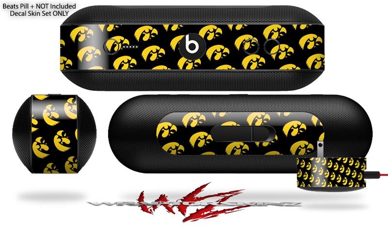 Decal Style Wrap Skin fits Beats Pill Plus Iowa Hawkeyes Tigerhawk Tiled 06 Gold on Black (BEATS PILL NOT INCLUDED)