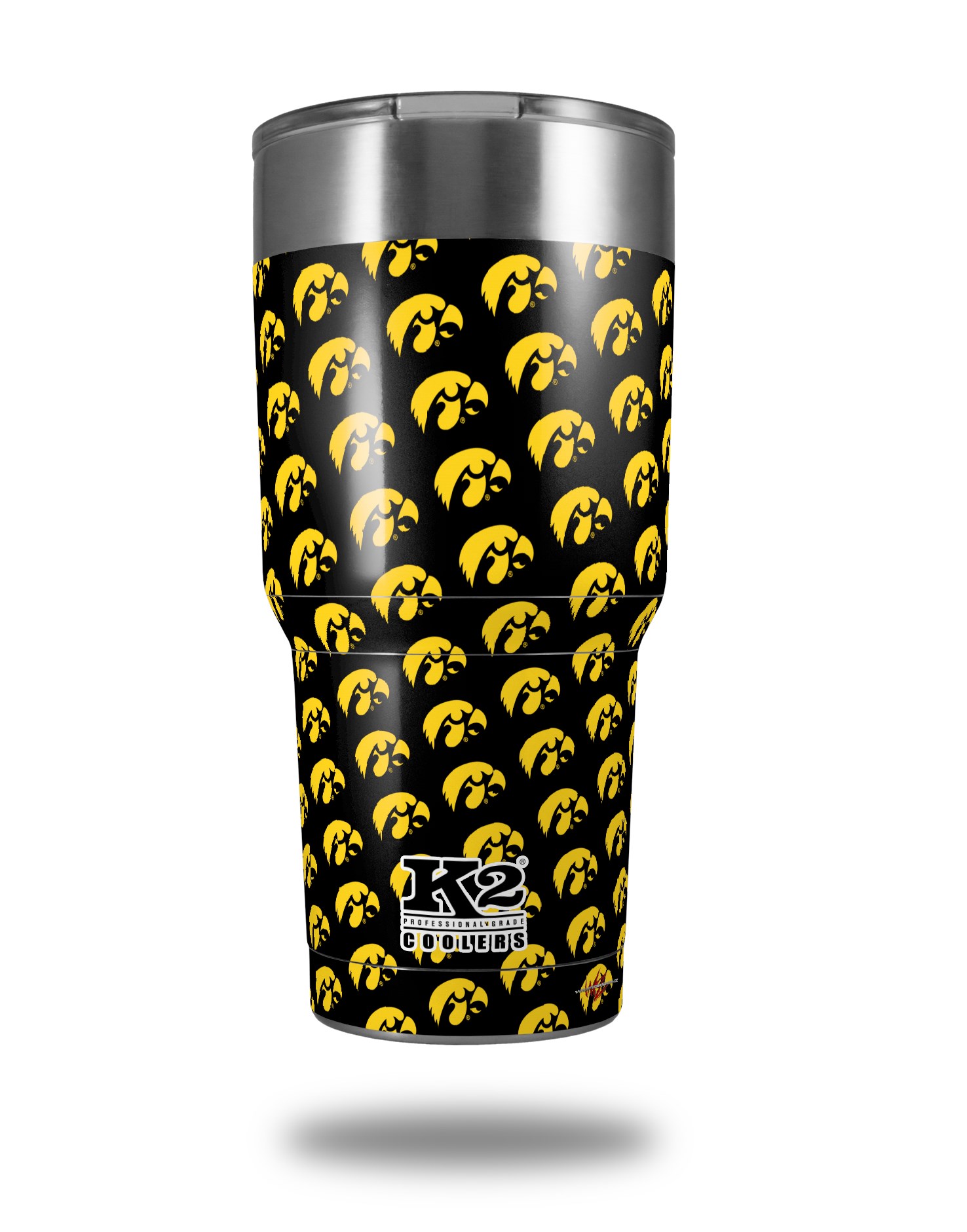 Skin Decal Wrap for K2 Element Tumbler 30oz - Iowa Hawkeyes Tigerhawk Tiled 06 Gold on Black (TUMBLER NOT INCLUDED)