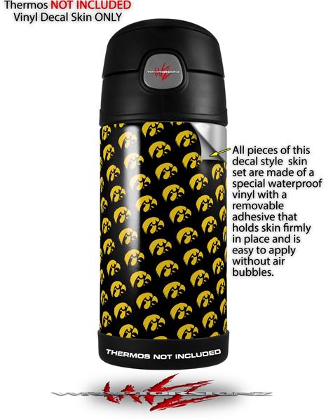 Skin Decal Wrap for Thermos Funtainer 12oz Bottle Iowa Hawkeyes Tigerhawk Tiled 06 Gold on Black (BOTTLE NOT INCLUDED)