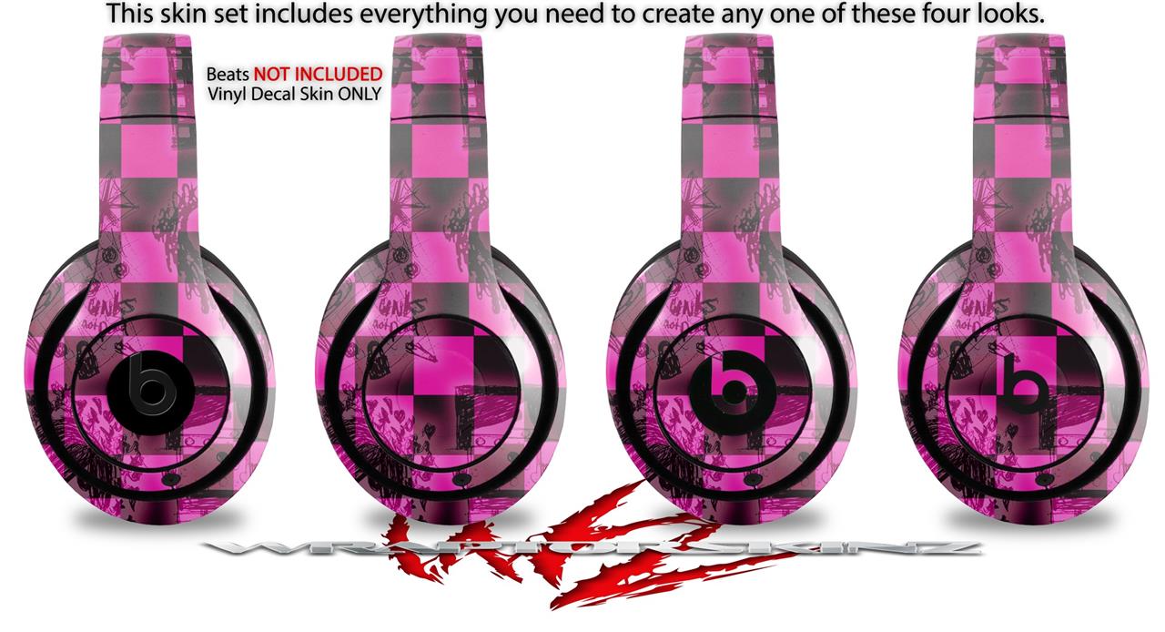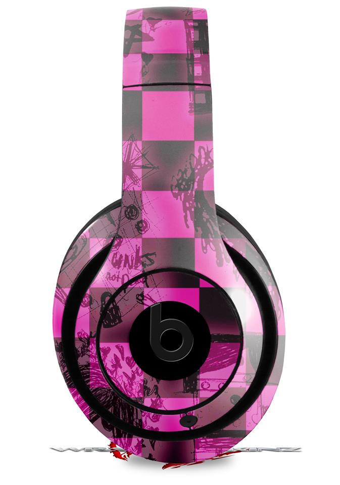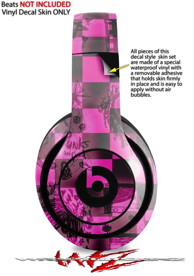 WraptorSkinz Skin Decal Wrap compatible with Beats Studio 2 and 3 Wired and Wireless Headphones Pink Checkerboard Sketches Skin Only (HEADPHONES NOT INCLUDED)