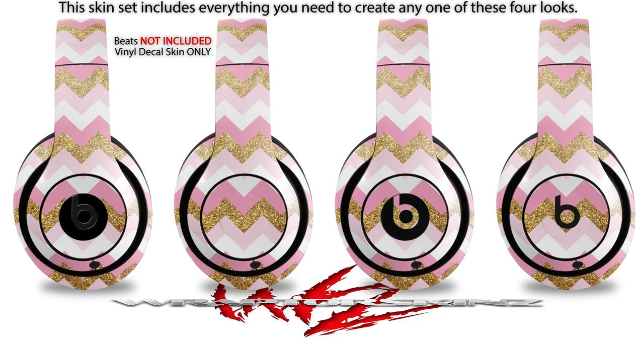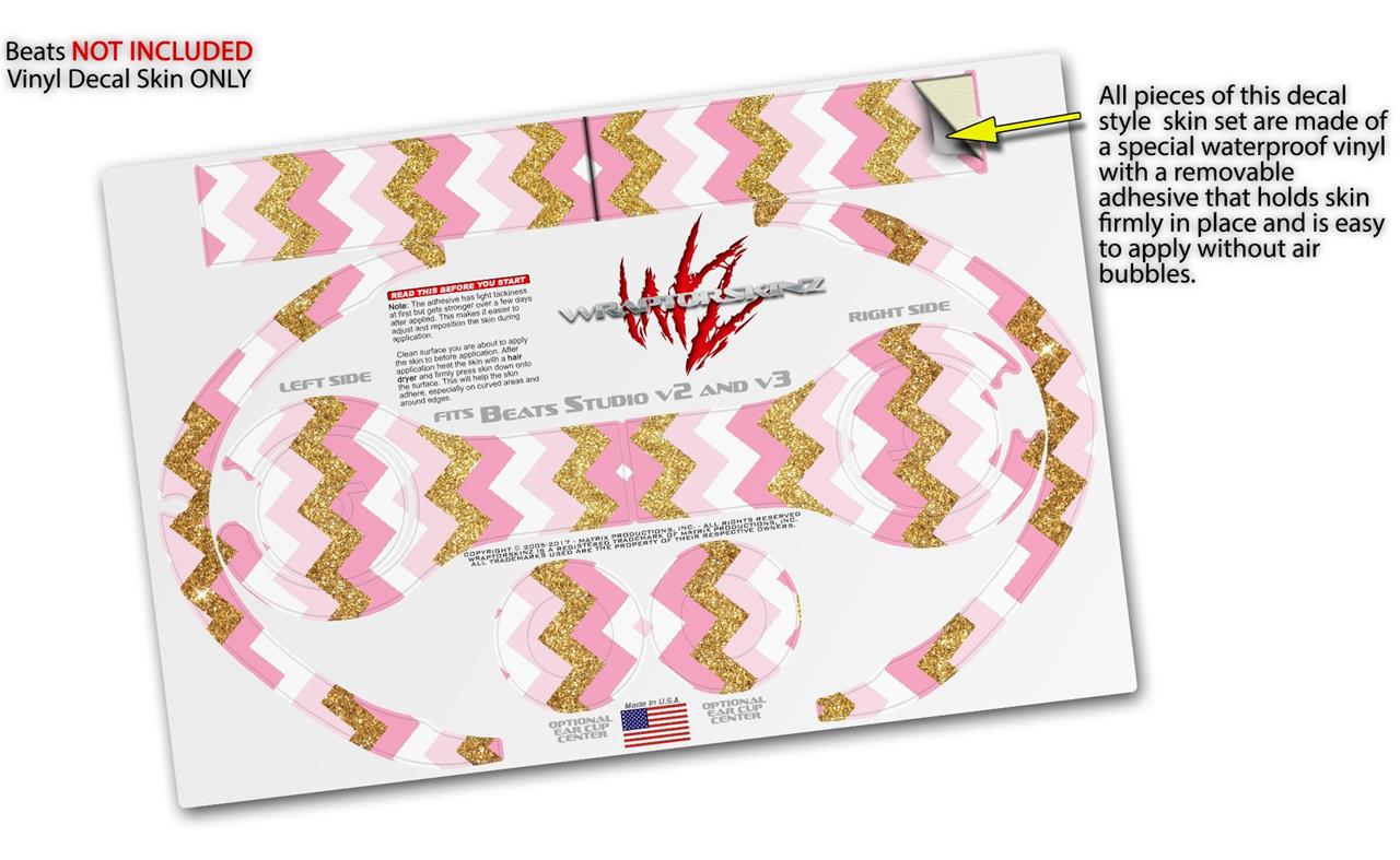 WraptorSkinz Skin Decal Wrap compatible with Beats Studio 2 and 3 Wired and Wireless Headphones Pink and White Chevron Skin Only (HEADPHONES NOT INCLUDED)