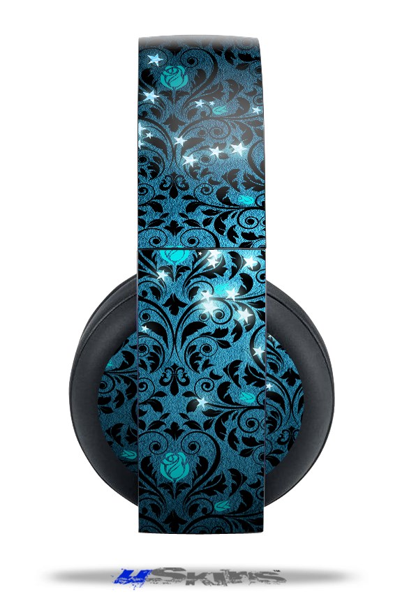 Vinyl Decal Skin Wrap compatible with Original Sony PlayStation 4 Gold Wireless Headphones Blue Flower Bomb Starry Night (PS4 HEADPHONES NOT INCLUDED)