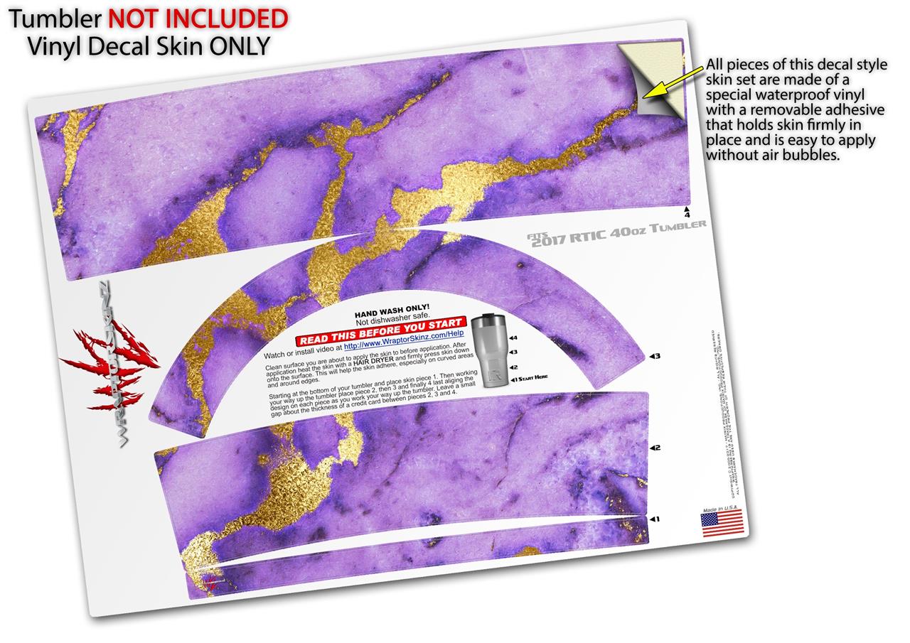 Skin Wrap Decal for 2017 RTIC Tumblers 40oz Purple and Gold Gilded Marble (TUMBLER NOT INCLUDED)