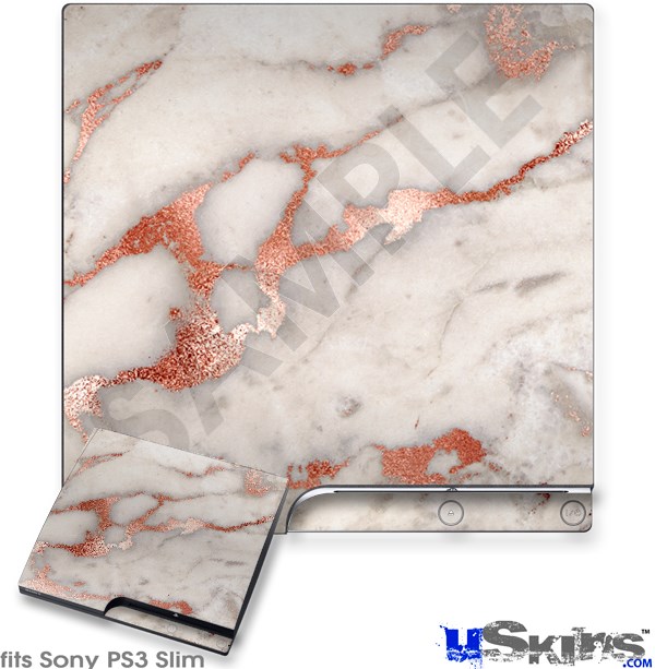 Decal Skin compatible with Sony PS3 Slim Rose Gold Gilded Marble