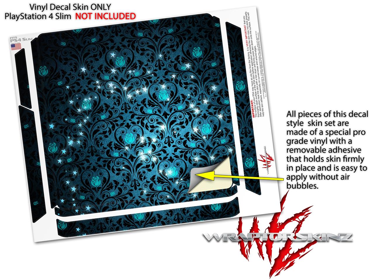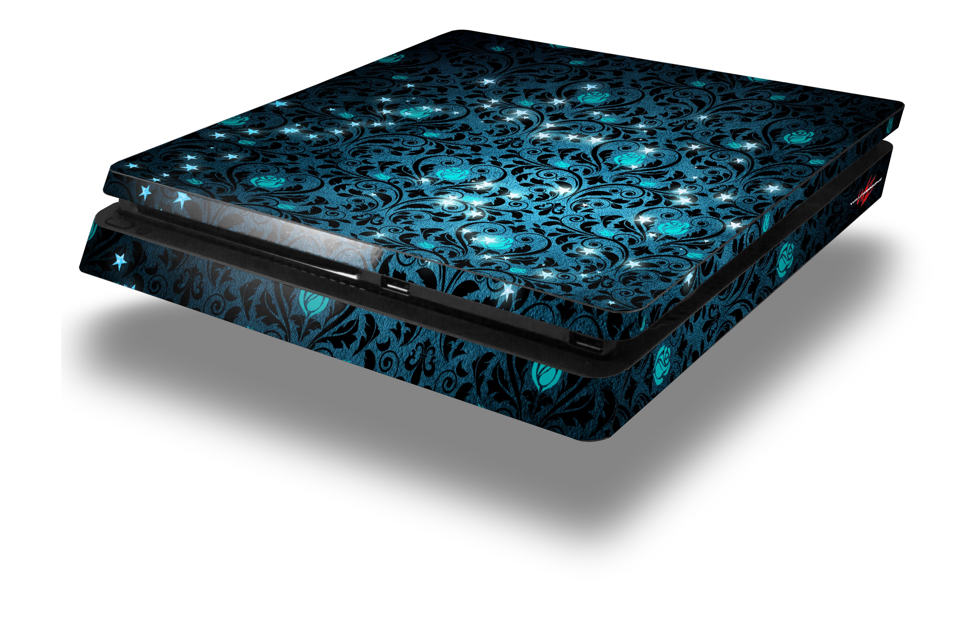 Vinyl Decal Skin Wrap compatible with Sony PlayStation 4 Slim Console Blue Flower Bomb Starry Night (PS4 NOT INCLUDED)