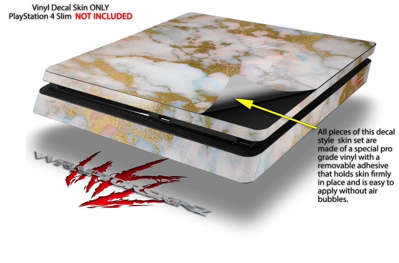 Vinyl Decal Skin Wrap compatible with Sony PlayStation 4 Slim Console Pastel Gilded Marble (PS4 NOT INCLUDED)