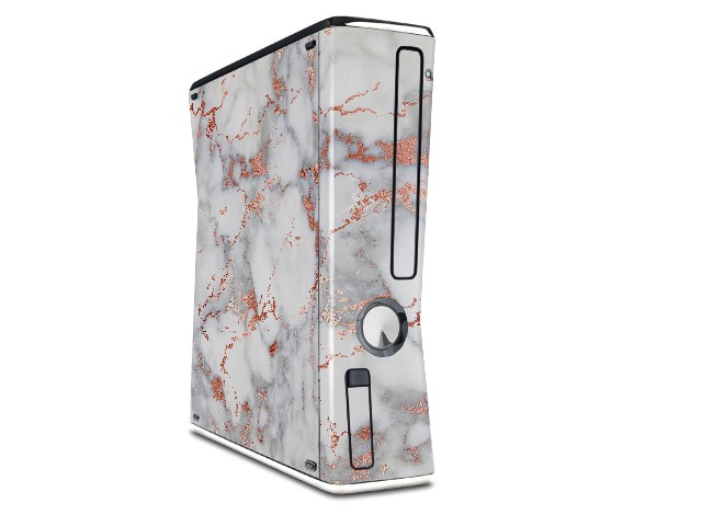 Rose Gold Gilded Grey Marble Decal Style Skin for XBOX 360 Slim Vertical