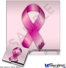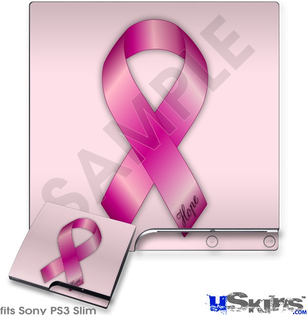Decal Skin compatible with Sony PS3 Slim Hope Breast Cancer Pink Ribbon on Pink