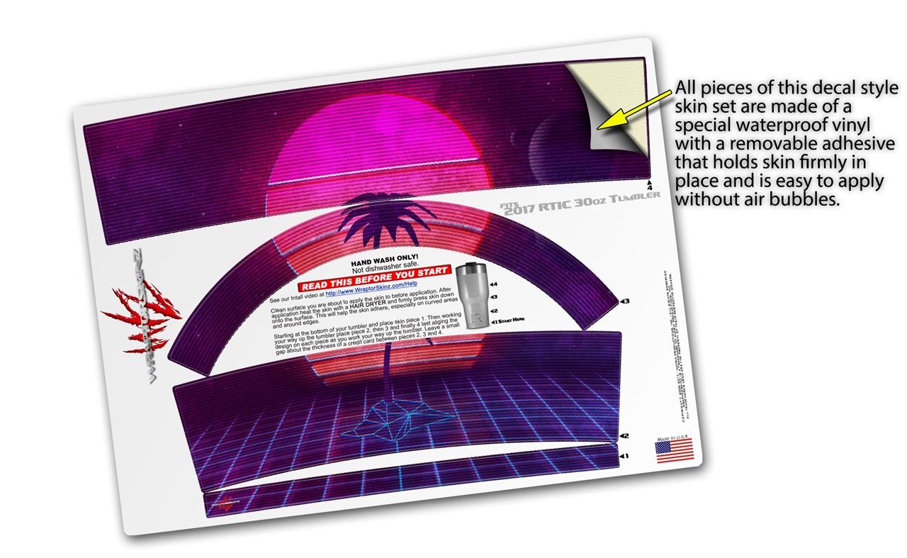 WraptorSkinz® skin wraps for 2017 RTIC Tumblers are printed using superb photo quality designs and vibrant colors printed with special fade resistant inks that last even in direct sun for years. WraptorSkinz® are a composite of two layers of commercial grade materials. The bottom layer is a soft, flexible vinyl with a special removable adhesive that is easily positioned, applied without air bubbles. Next we print the bottom layer with UV protected, fade resistant inks that deliver superb photo quality designs in vibrant colors. Finally we bond a professional grade laminate over the entire skin adding a glossy protective finish.