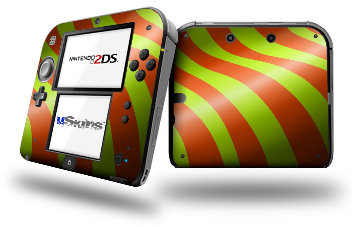 Two Tone Waves Neon Green Orange - Decal Style Vinyl Skin fits Nintendo 2DS - 2DS NOT INCLUDED