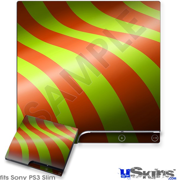 Decal Skin compatible with Sony PS3 Slim Two Tone Waves Neon Green Orange