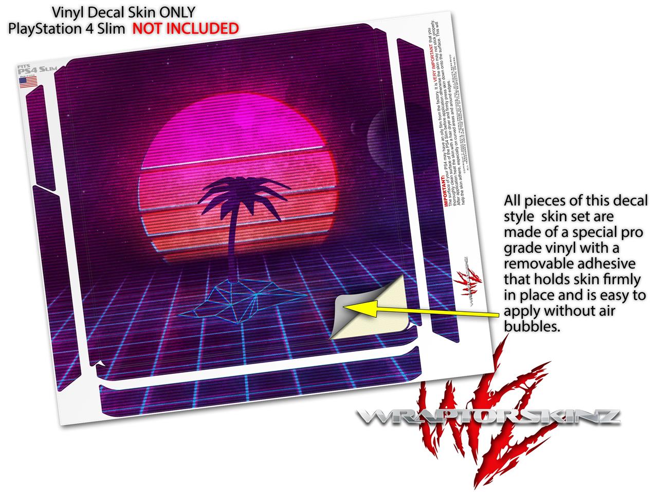 Vinyl Decal Skin Wrap compatible with Sony PlayStation 4 Slim Console Synth Beach (PS4 NOT INCLUDED)