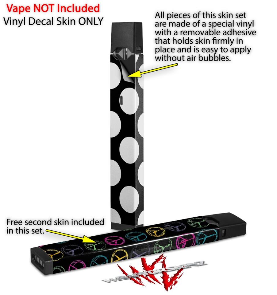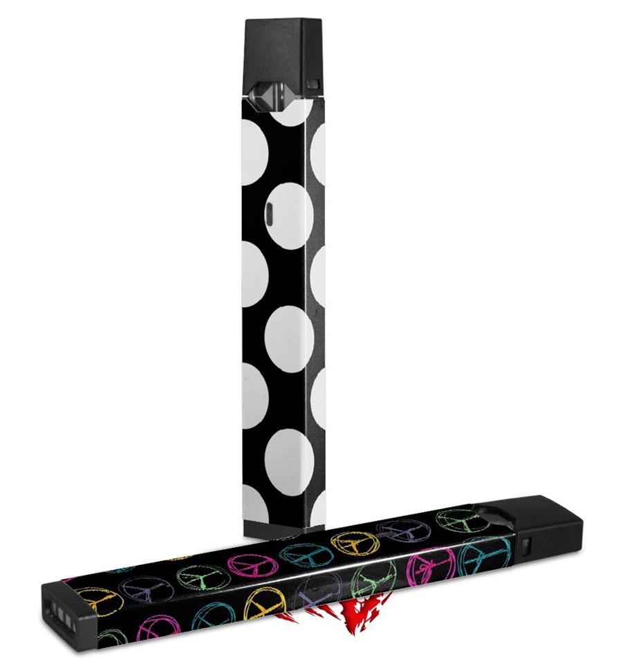 Skin Decal Wrap 2 Pack for Juul Vapes Kearas Polka Dots White On Black JUUL NOT INCLUDED