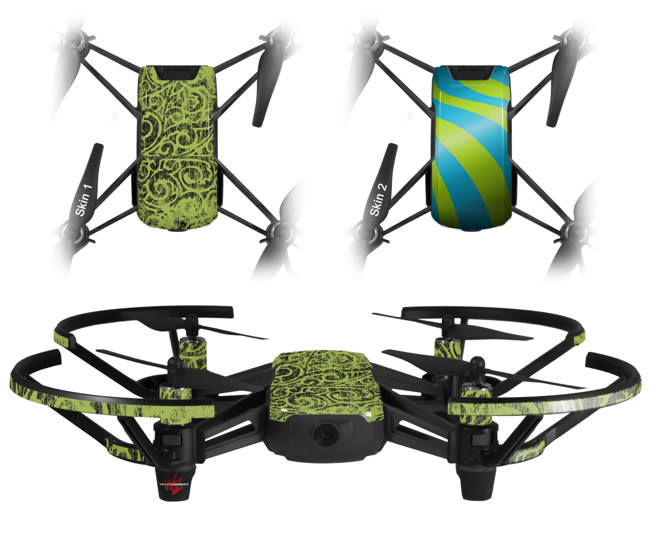 Skin Decal Wrap 2 Pack for DJI Ryze Tello Drone Folder Doodles Sage Green DRONE NOT INCLUDED