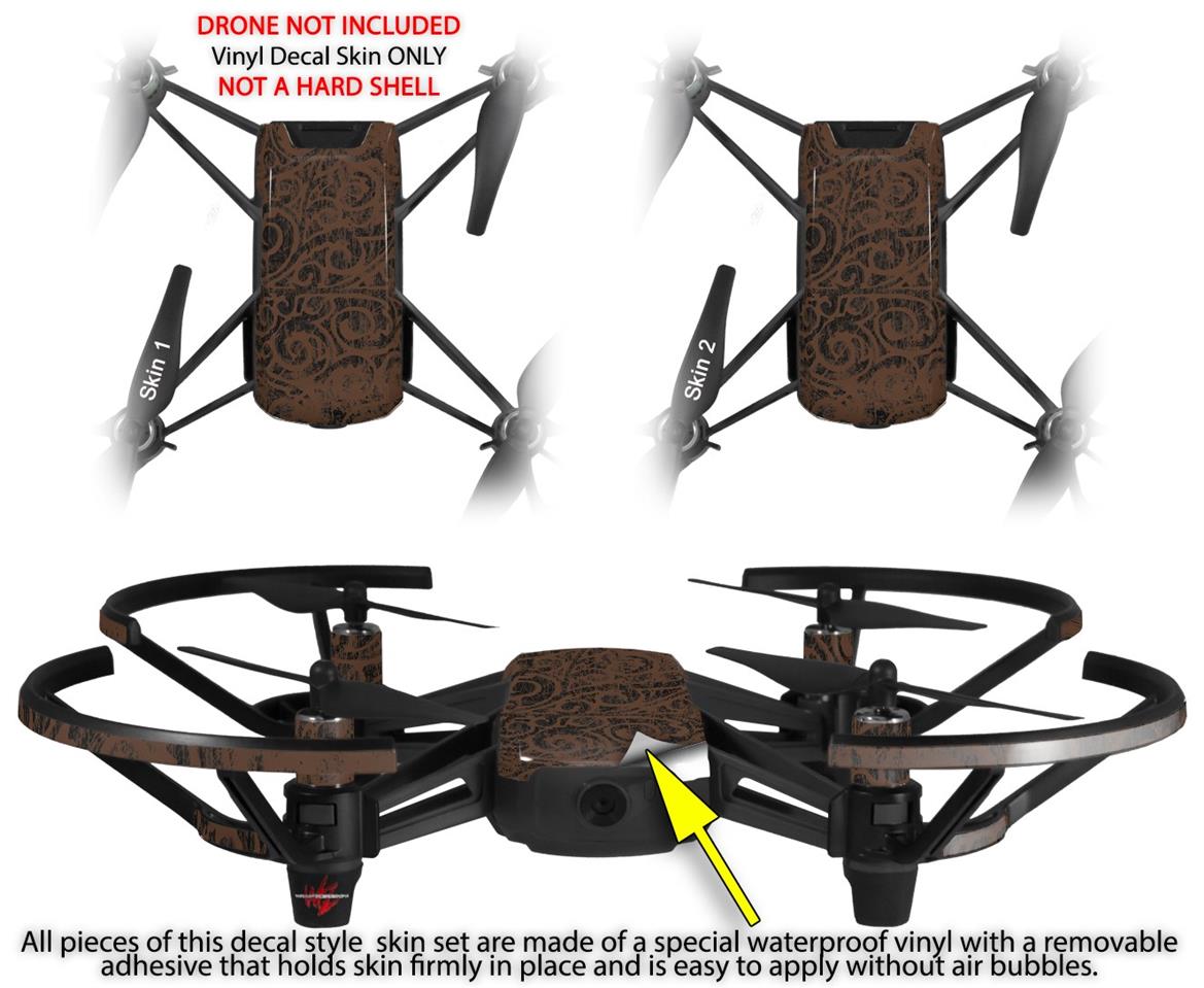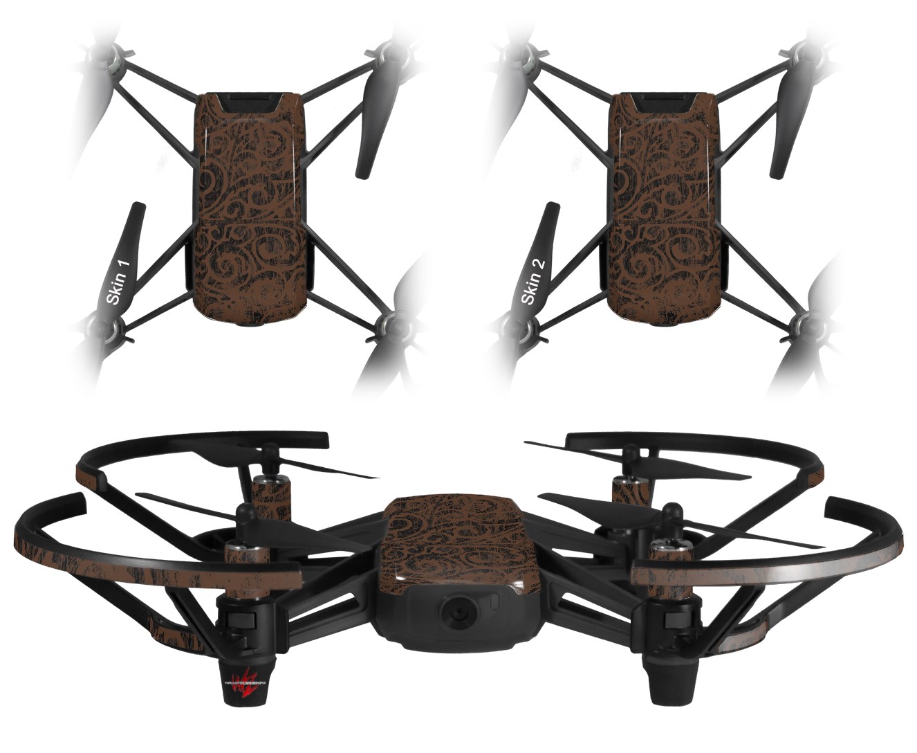 Skin Decal Wrap 2 Pack for DJI Ryze Tello Drone Folder Doodles Chocolate Brown DRONE NOT INCLUDED