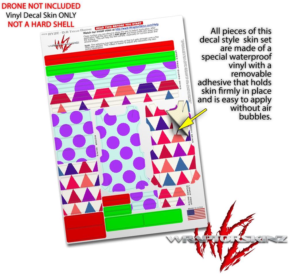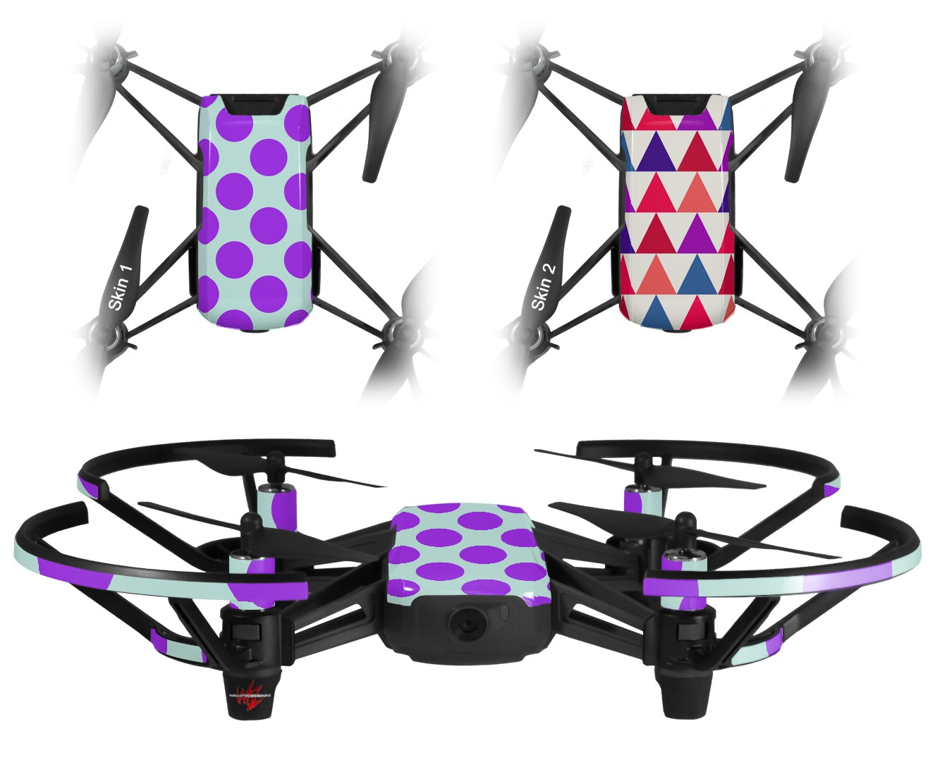 Skin Decal Wrap 2 Pack for DJI Ryze Tello Drone Kearas Polka Dots Purple And Blue DRONE NOT INCLUDED