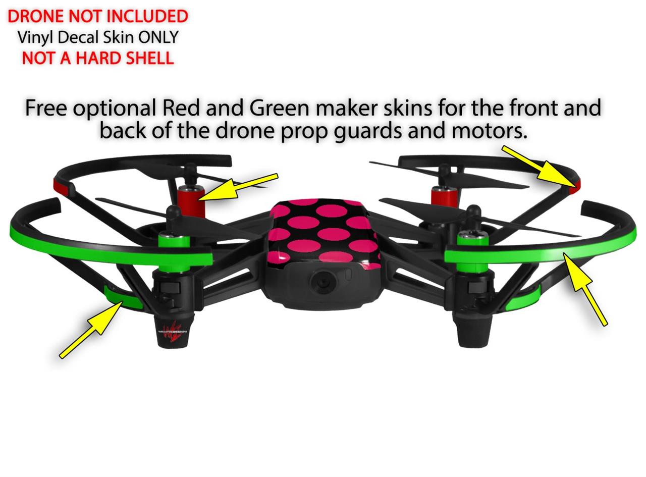 Skin Decal Wrap 2 Pack for DJI Ryze Tello Drone Kearas Polka Dots Pink On Black DRONE NOT INCLUDED