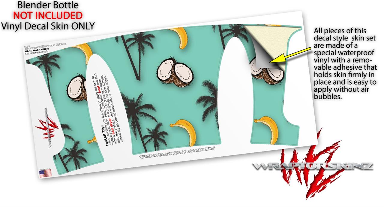 Decal Style Skin Wrap works with Blender Bottle 20oz Coconuts Palm Trees and Bananas Seafoam Green (BOTTLE NOT INCLUDED)