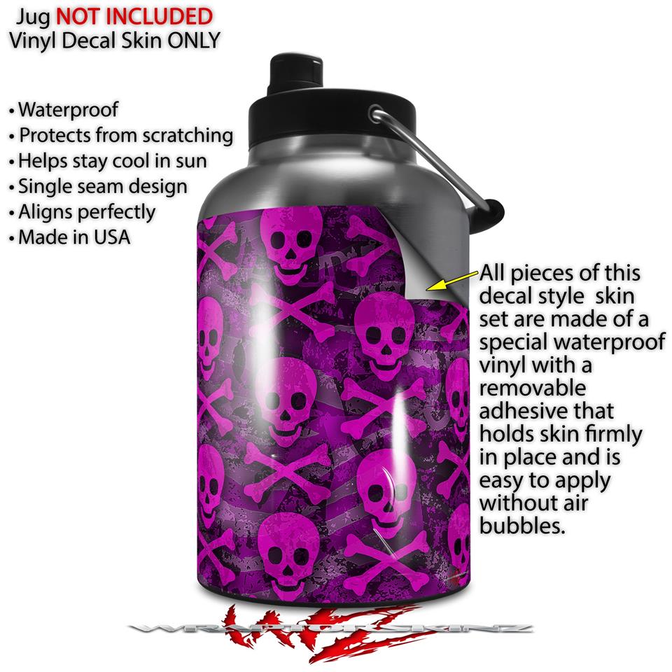 Skin Decal Wrap for 2017 RTIC One Gallon Jug Pink Skull Bones (Jug NOT INCLUDED) by WraptorSkinz