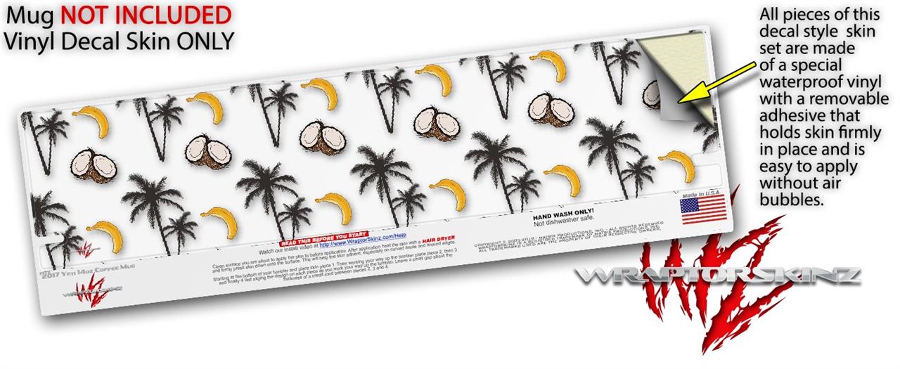 Skin Decal Wrap for Yeti Coffee Mug 14oz Coconuts Palm Trees and Bananas White - 14 oz CUP NOT INCLUDED by WraptorSkinz