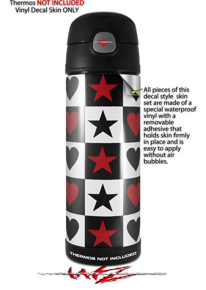 Skin Decal Wrap for Thermos Funtainer 16oz Bottle Hearts and Stars Red (BOTTLE NOT INCLUDED) by WraptorSkinz